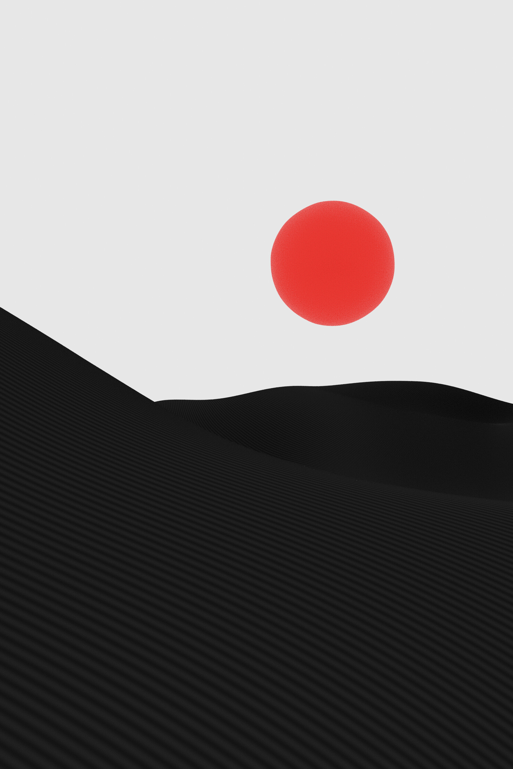A twelve-piece minimalist 3D collection built in Blender, focused on stark beauty and controlled abstraction. Using a restrained palette of black, red, and muted gray, each image studies form and light across sculpted dunes. The recurring red sphere serves as a quiet anchor — a symbol of life within a dry digital void.